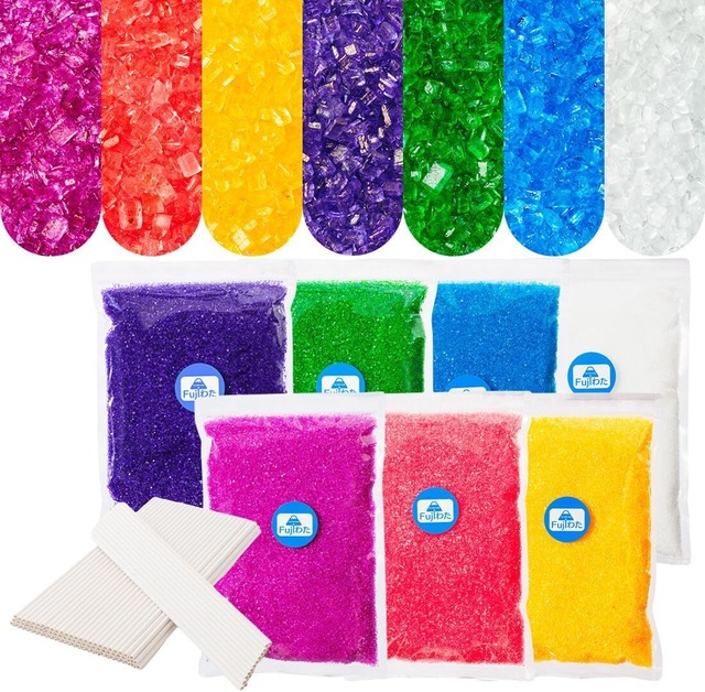 【しっかり発色!わたあめ 専門店】 綿菓子用 カラーザラメ ざらめ わたあめ用 コットンキャンディー cotton candy 【国内製造 Fujiわた】 (7色) (500g×7 40㎝紙棒100本, 7色)